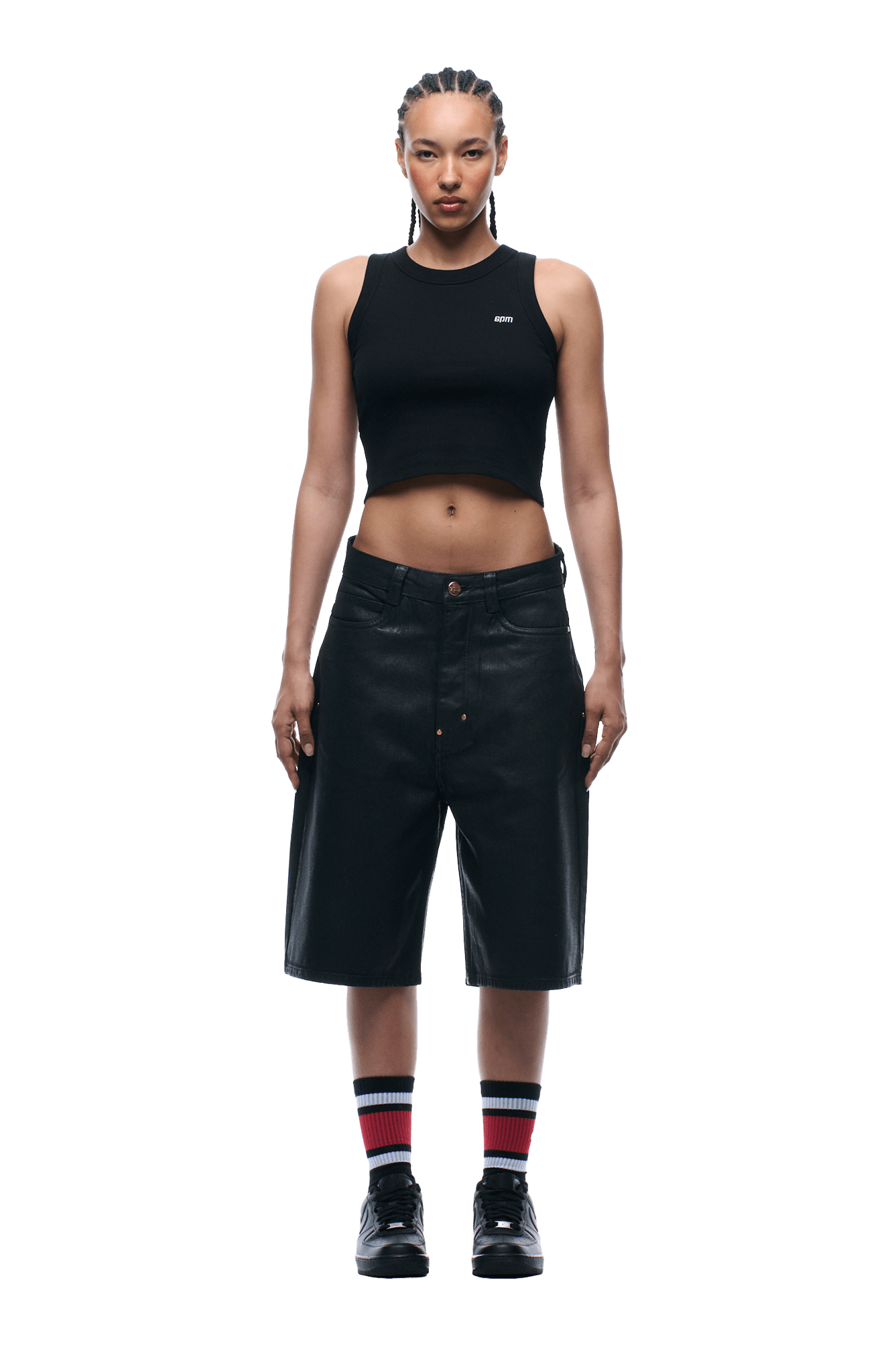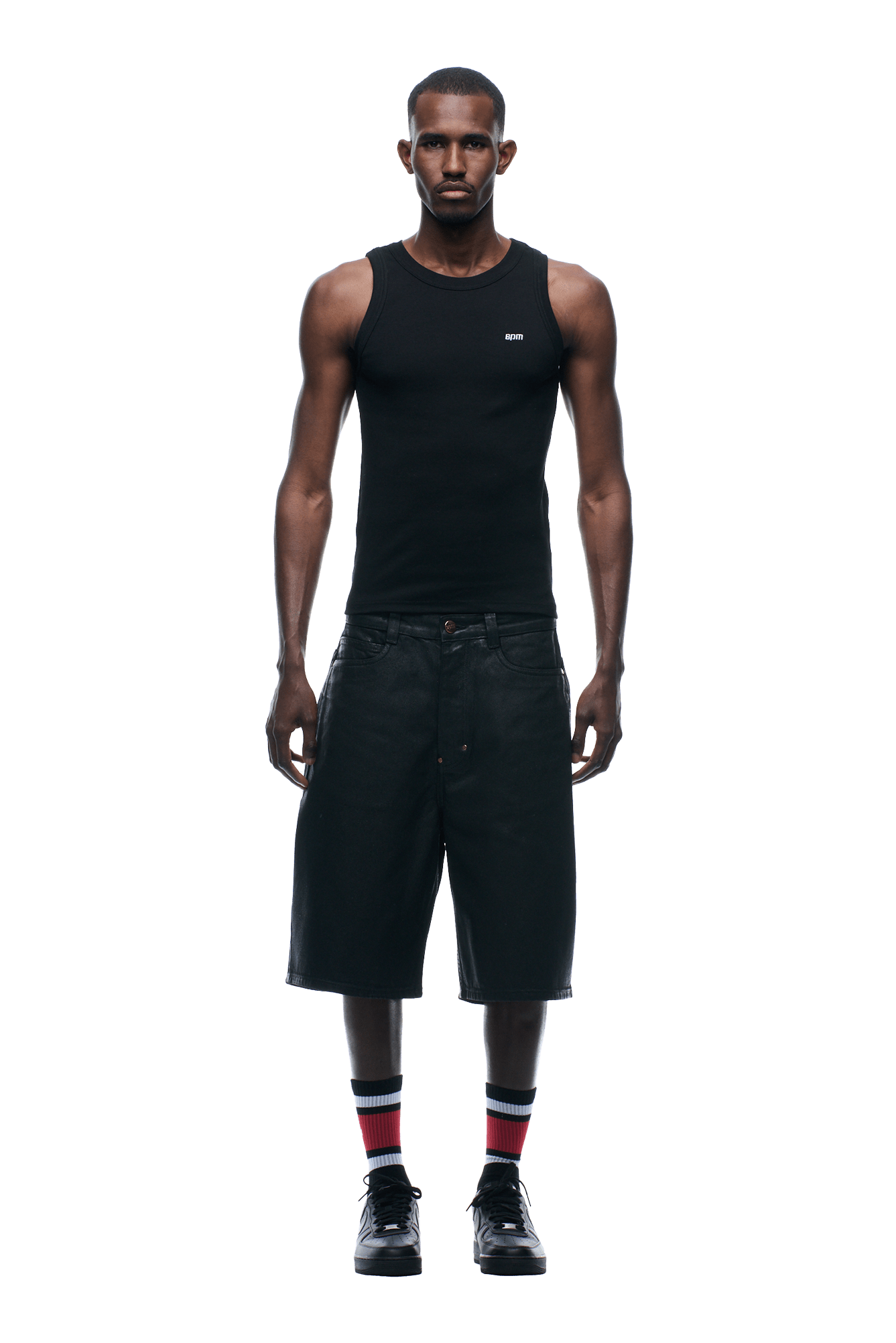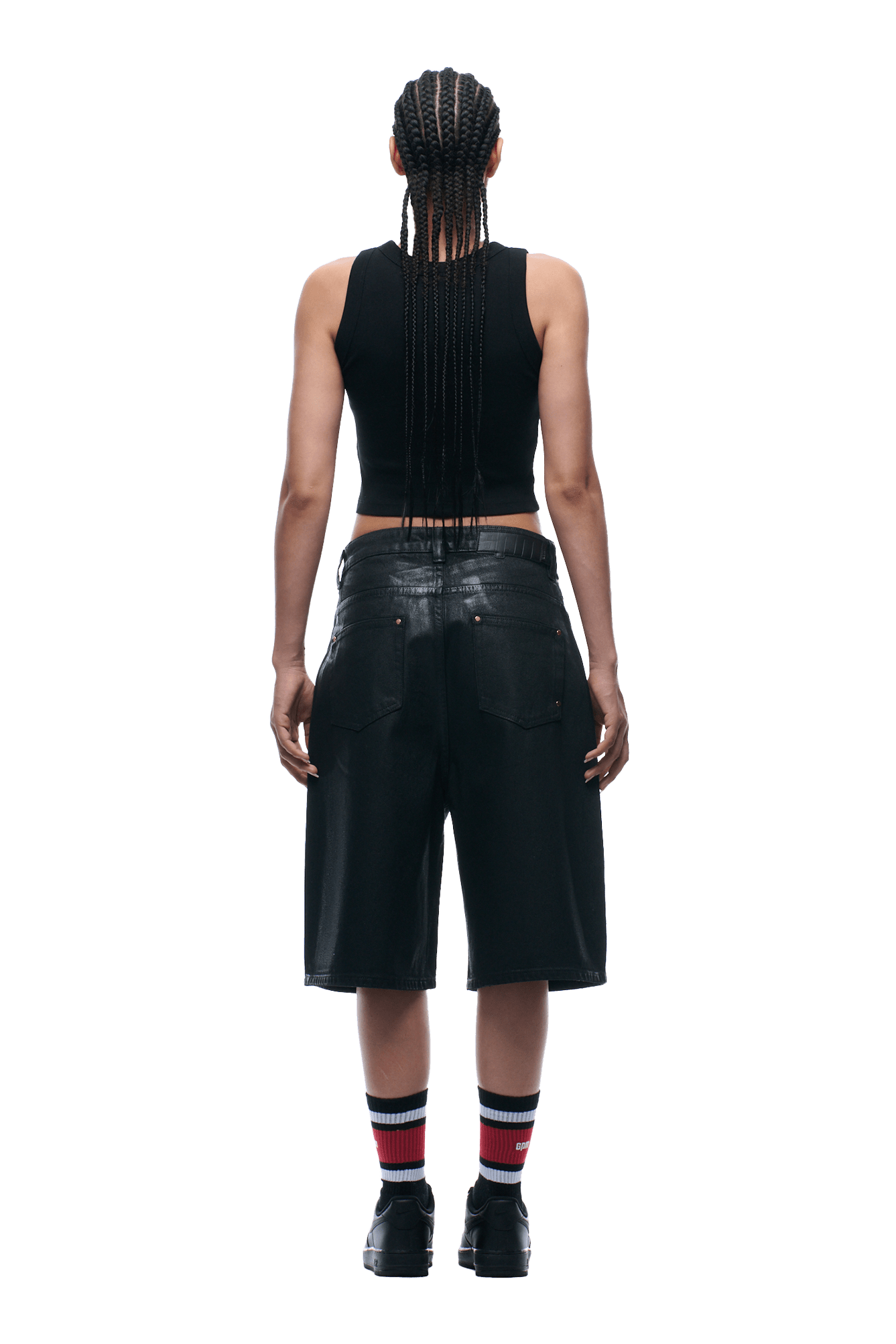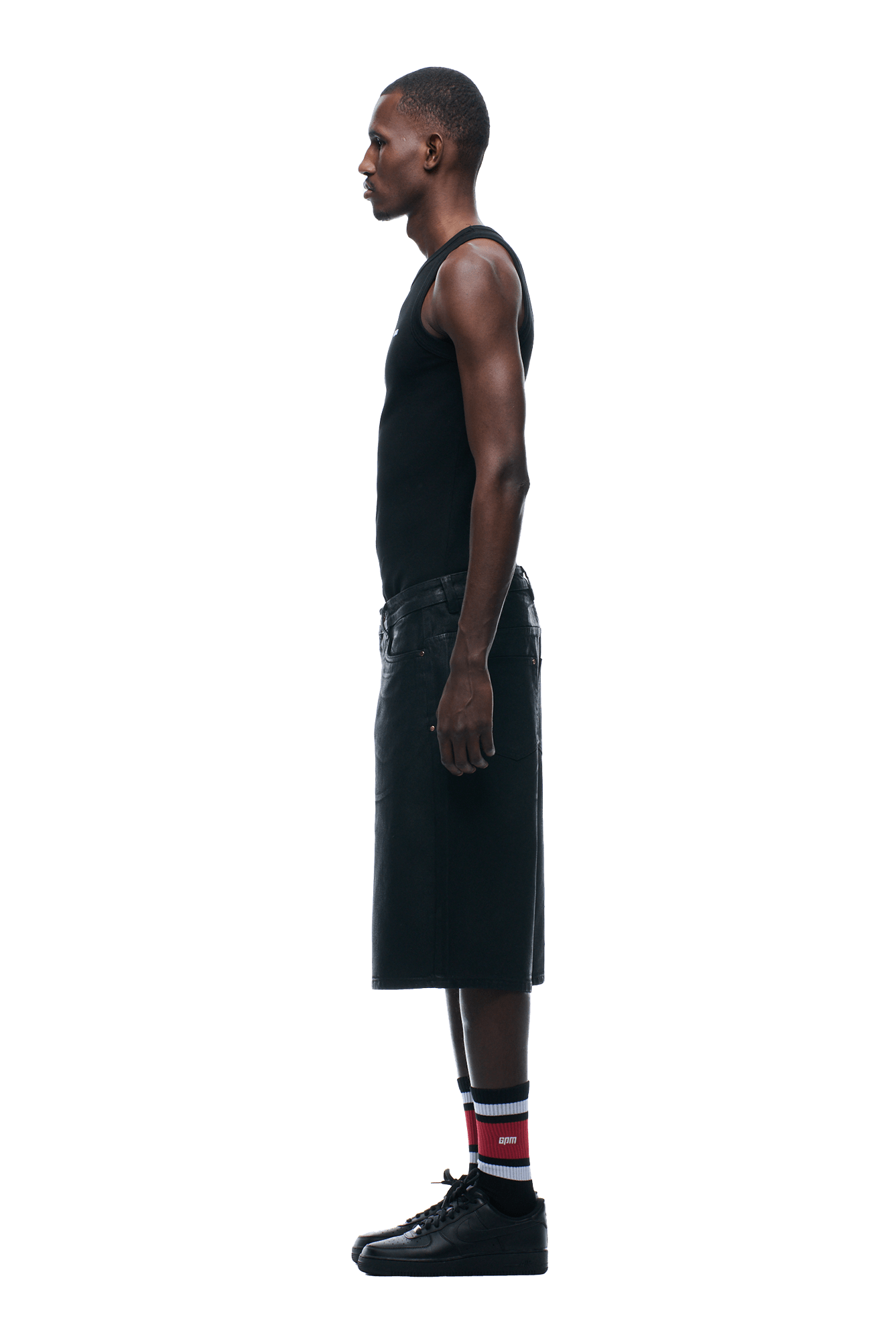 COATED DENIM SHORTS BLACK
