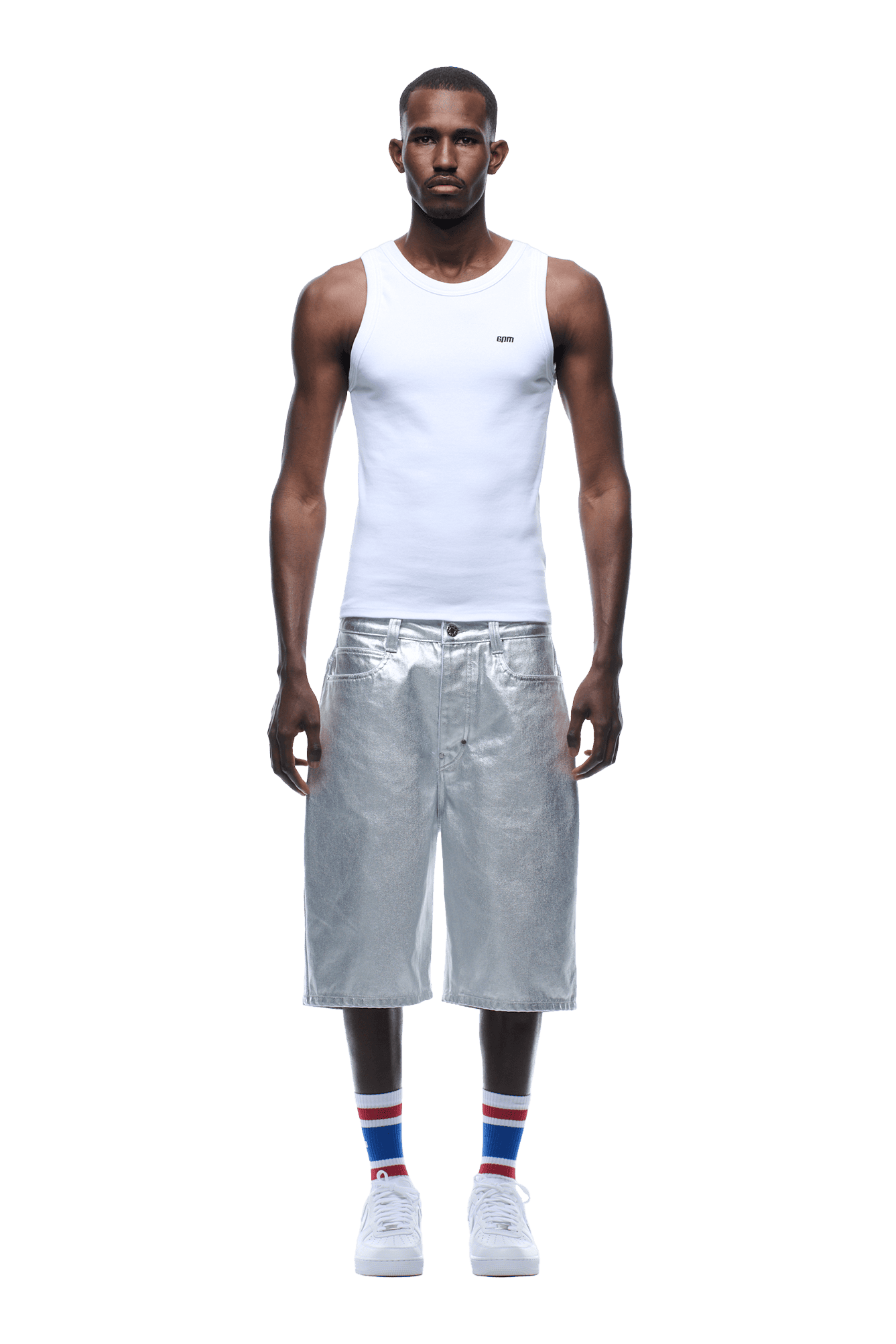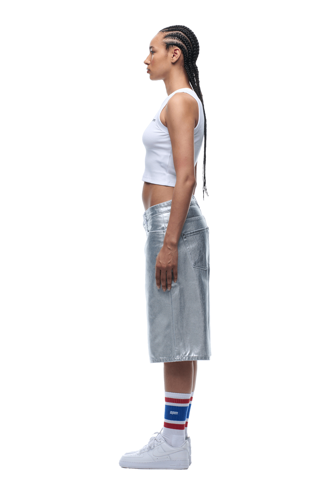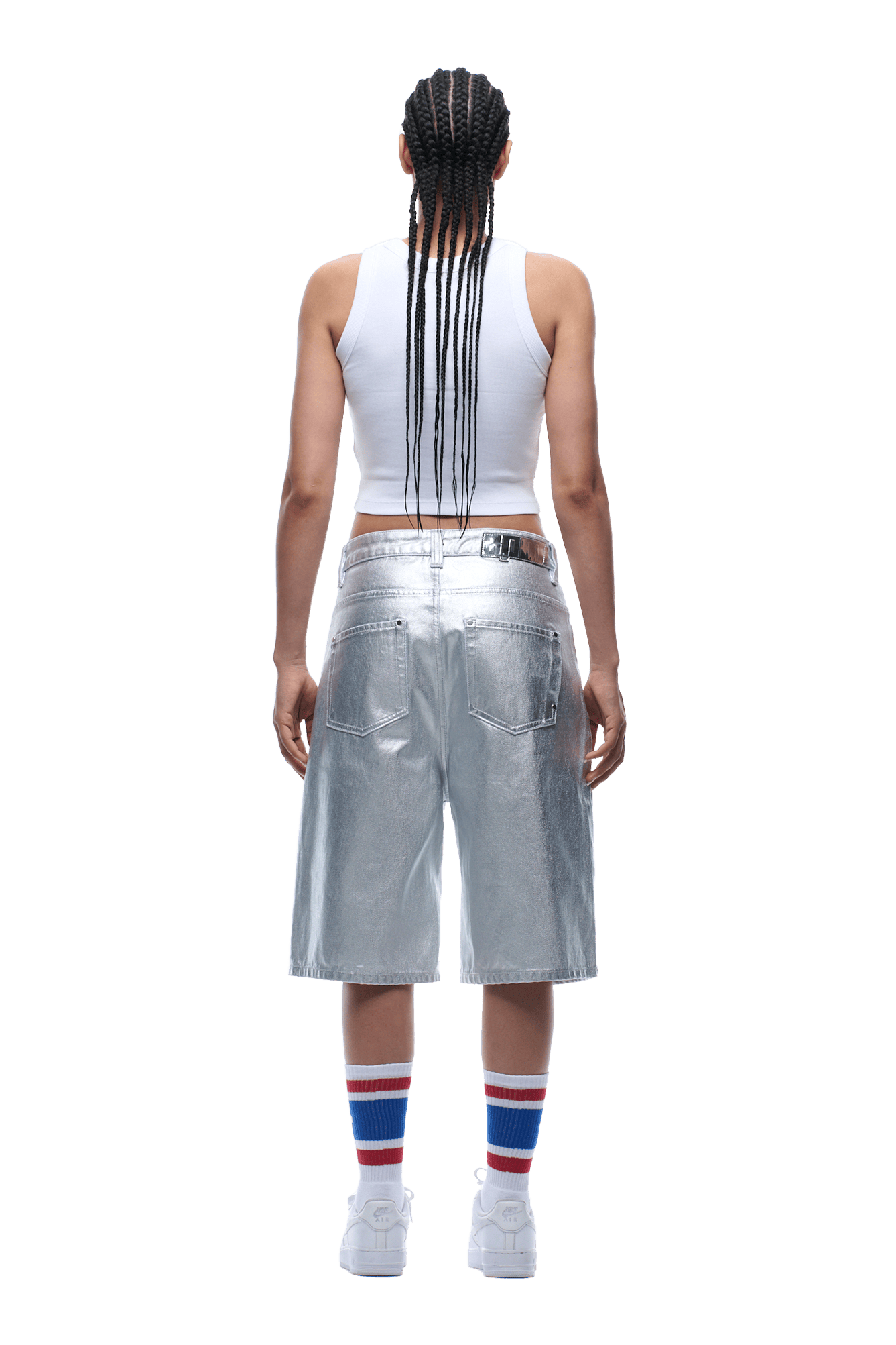 COATED DENIM SHORTS SILVER SURFER