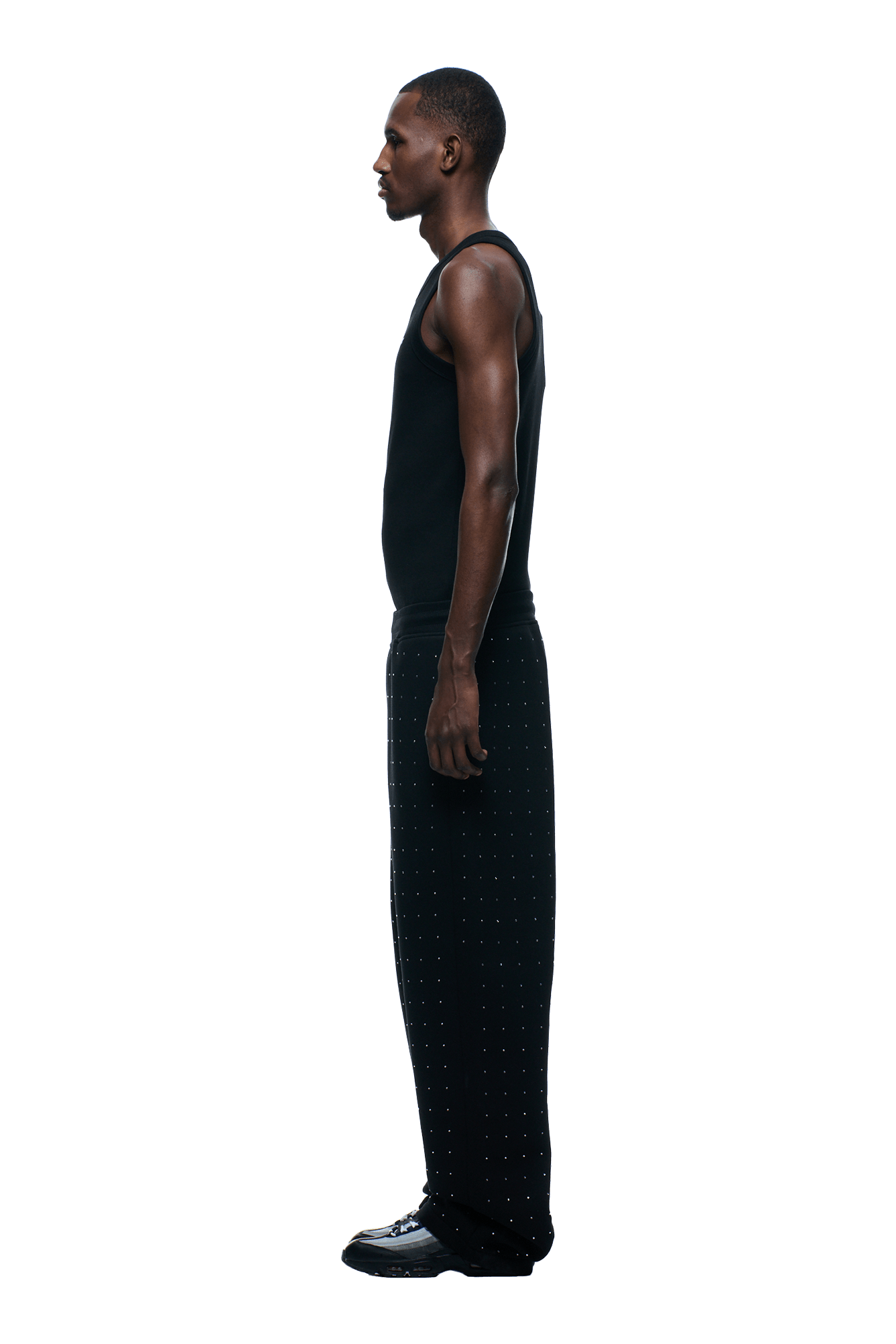 RHINESTONE OPEN LEG JOGGER BLACK