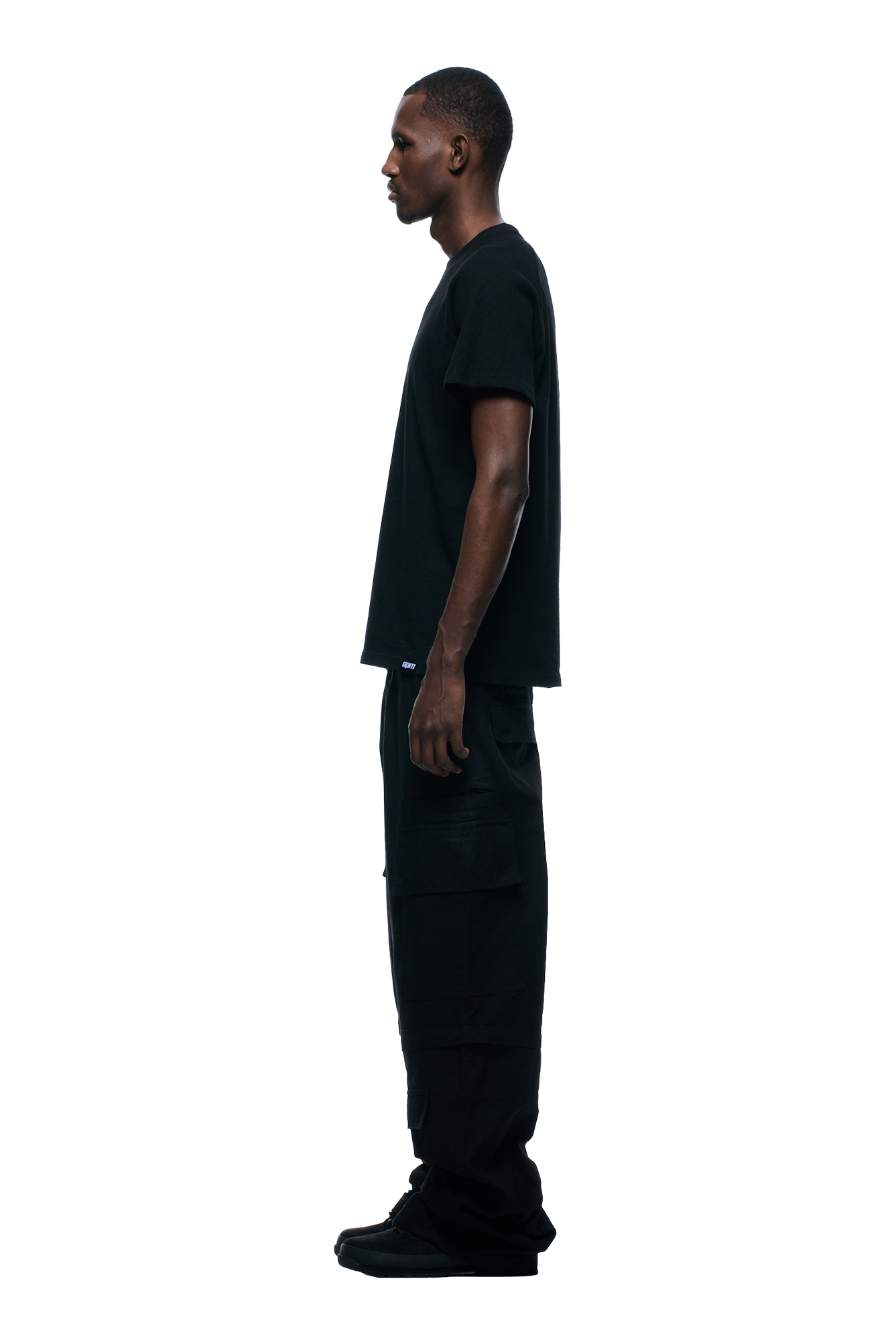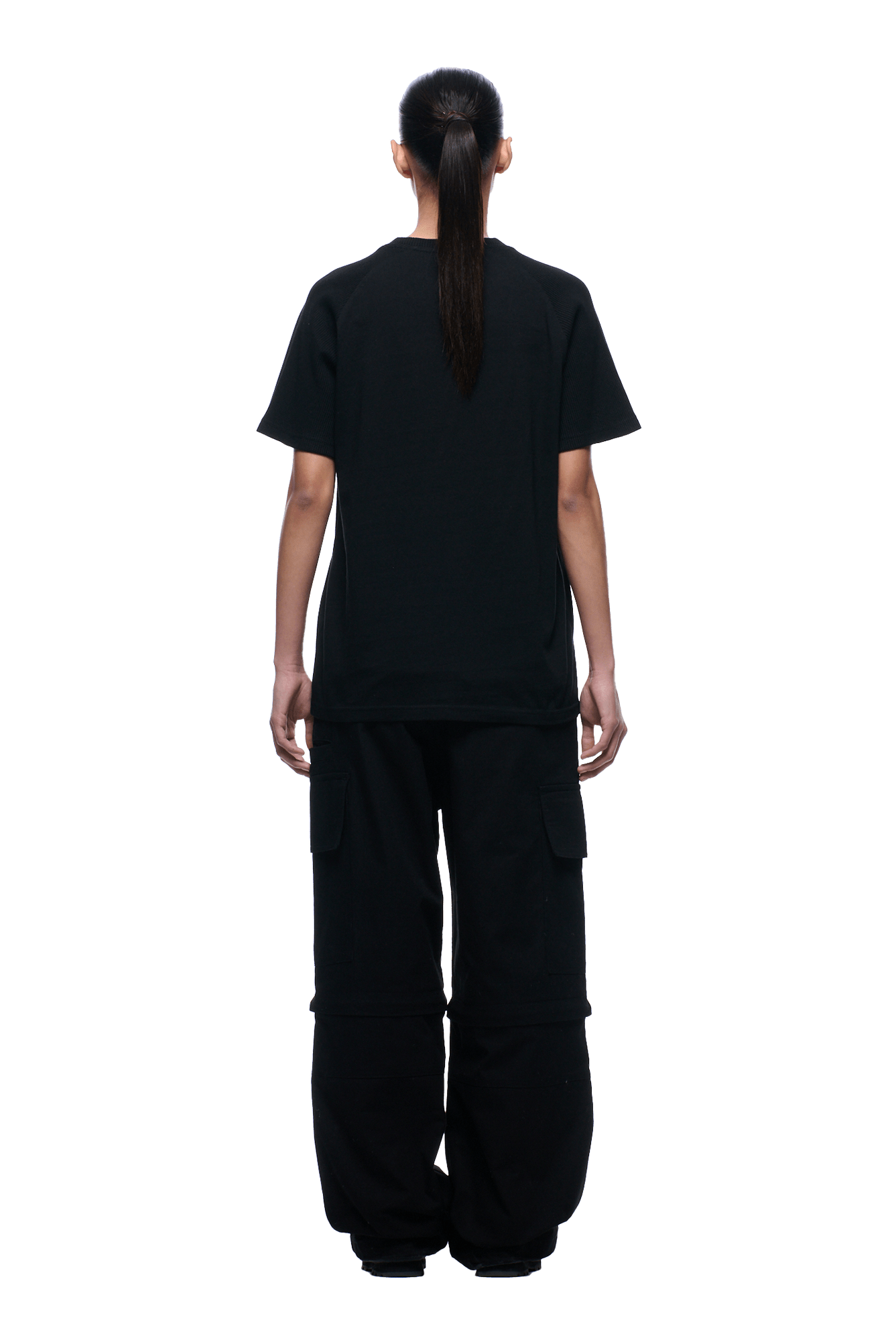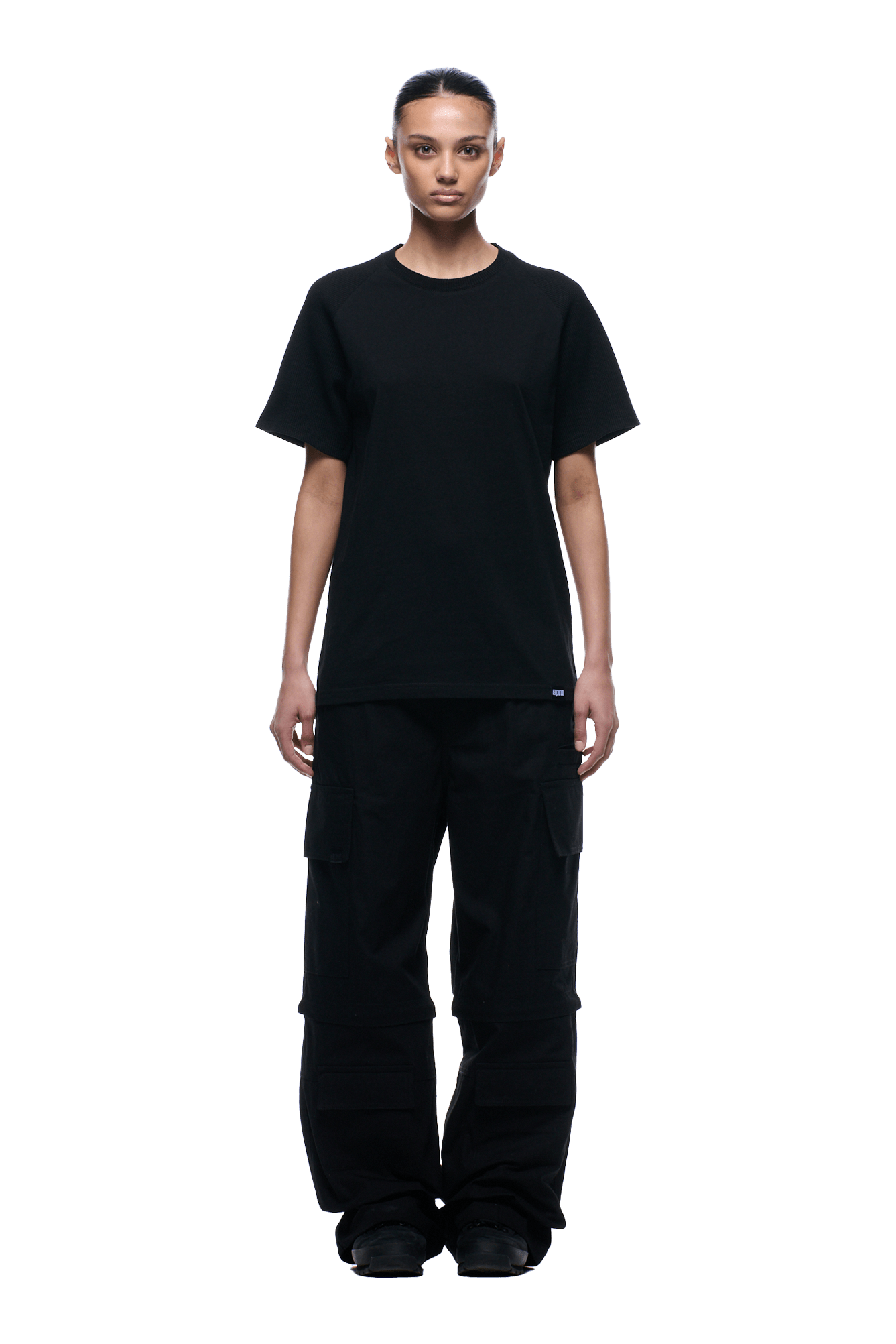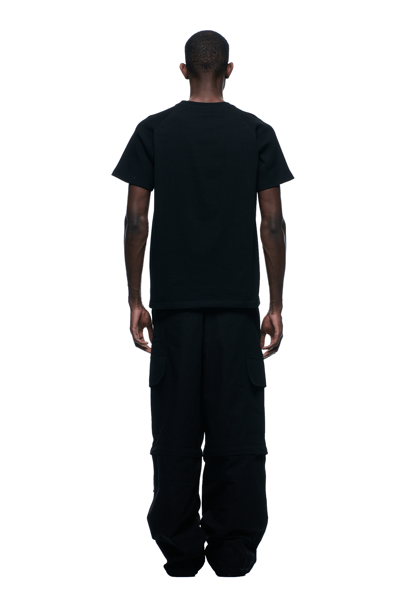 WAFFLE SLEEVE RAGLAN TEE BLACK